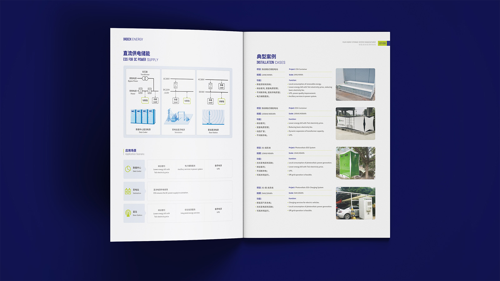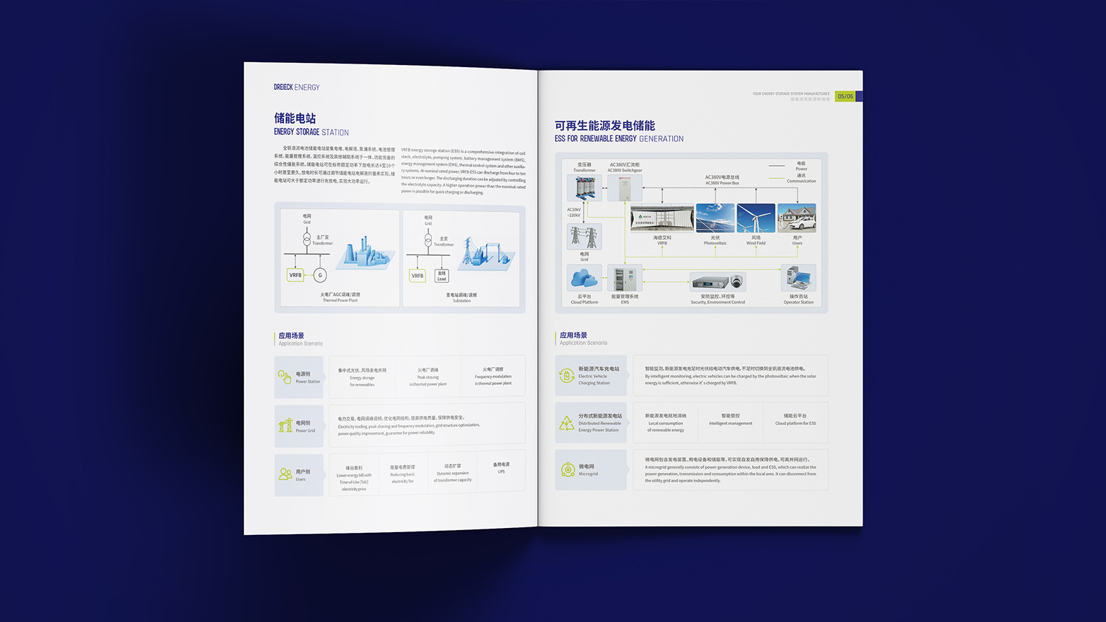 企業(yè)的畫冊(cè)設(shè)計(jì)要站在品牌建設(shè)的高度,不僅需要展現(xiàn)企業(yè)的品牌形象,還需要設(shè)計(jì)出品牌的個(gè)性來(lái),基于此,在此次的畫冊(cè)設(shè)計(jì)中,石特提出了新的想法。封面封底以淡綠色和深藍(lán)色為主,帶給人一種嚴(yán)謹(jǐn)務(wù)實(shí)、值得信任的感覺(jué);內(nèi)容上首先以圖文結(jié)合的形式先對(duì)企業(yè)的基本情況進(jìn)行介紹,然后闡述了全釩液流電池技術(shù)的原理以及應(yīng)用場(chǎng)景,并對(duì)儲(chǔ)能電站的相關(guān)知識(shí)進(jìn)行了科普,最后以典型案例、產(chǎn)品系列、資質(zhì)認(rèn)證的介紹為結(jié)尾,該畫冊(cè)簡(jiǎn)潔美觀、主次分明,德海艾科人嚴(yán)謹(jǐn)務(wù)實(shí)的工作態(tài)度和創(chuàng)新的精神得到了系統(tǒng)且充分的展示。