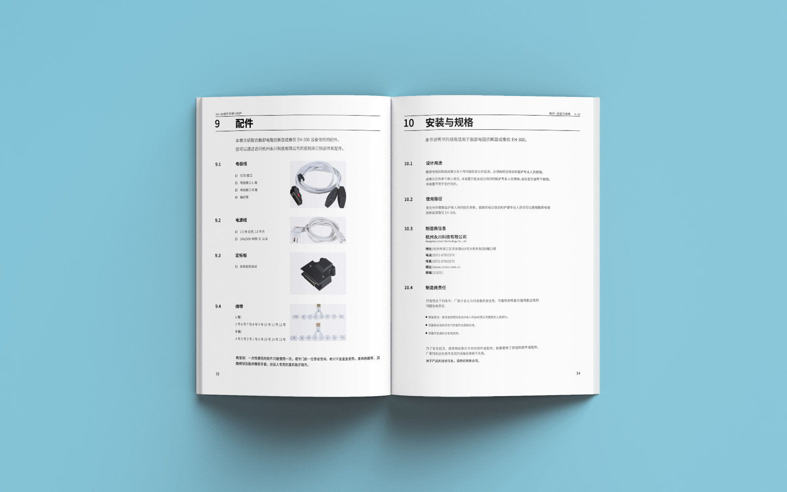 腦灌注設備,MH-200腦卒中院前分診儀,EH-300無創腦水腫監護儀,EH-100無創腦水腫監護儀等醫療器械產品說明書的設計排版印刷制作工作。說明書設計過程中需要注意嚴謹大氣,思維邏輯清晰明了,方便于用戶更快更好的了解產品性能與使用方式,另外產品說明書是公司對外宣傳的一個窗口,精心設計會為品牌賦能。