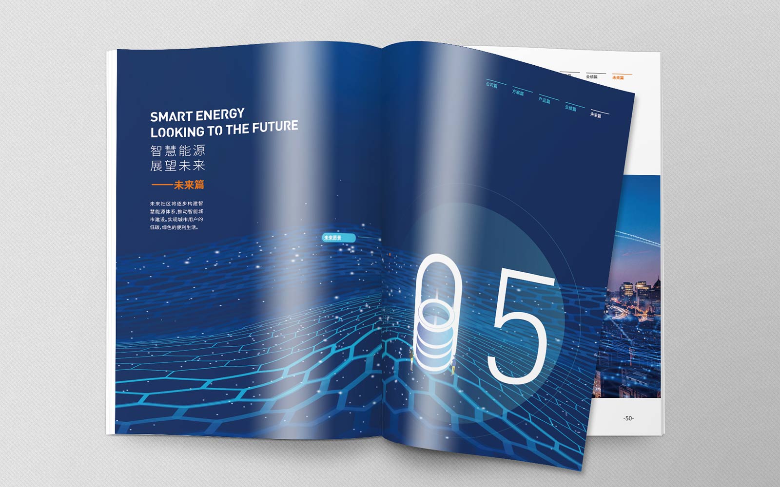 畫冊在設計過程中為實現能源的可視化,進行了2.5D的插畫設計,讓整本畫冊內容美觀、易懂。封面采用了數據化、科技化的設計,貼合企業的行業屬性。