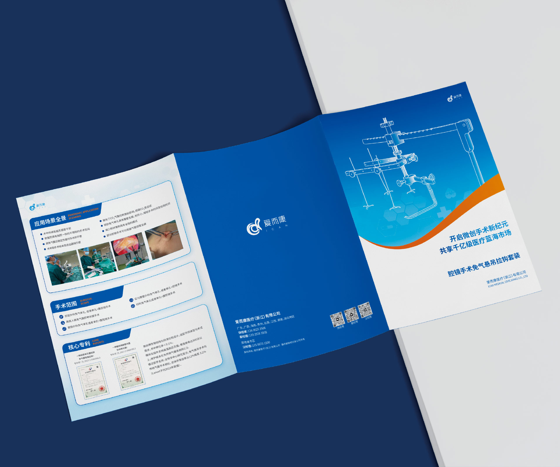 通過本次策劃設計,這份三折頁成功成為了愛而康醫療向外科醫生介紹此項創新技術的“視覺說明書”,有效降低了新技術的溝通成本,為市場推廣提供了關鍵助力。