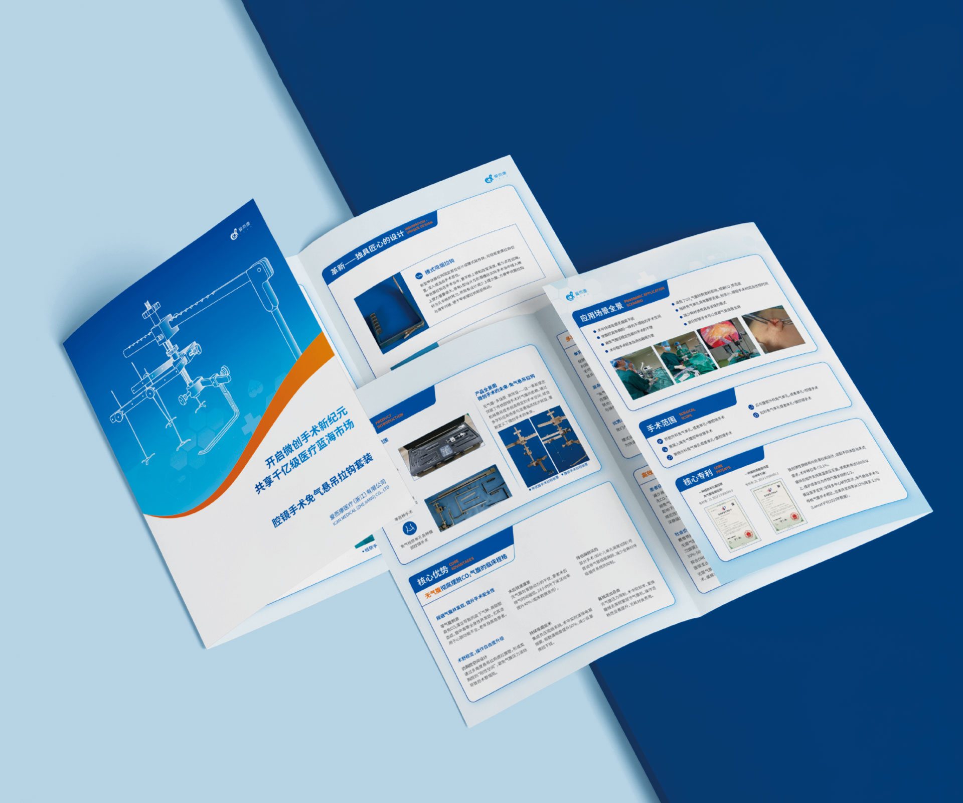 本項目是石特大健康為愛而康醫療(浙江)有限公司的創新產品——腔鏡手術免氣懸吊拉鉤套裝策劃設計的三折頁宣傳物料。該產品通過顛覆性的“免氣腹”懸吊技術,為腔鏡手術提供了全新的解決方案。我們的核心挑戰在于,如何在這一份小巧的三折頁中,向時間寶貴的外科醫生清晰、直觀地闡釋這一相對陌生的技術原理,并將其與傳統氣腹手術的對比優勢(如避免相關并發癥、提升手術安全性等)進行強有力的傳達,從而引發他們的興趣與嘗試意愿。